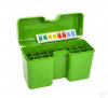 Коробка очень удобна для переноски в кармане одежды. Обеспечивает сохранность и защищает боеприпасы от воздействия влаги, пыли, перепадов температуры и повреждений при падениях или перевозке. Маркировка калибров на крышке коробки. Прямоугольная форма дизайна из прочного пластика устойчивого к ударам с индивидуальными ячейками вместимостью на 22 патрона для нарезного оружия для разных калибров. Закрывается коробка крышкой во всю высоту коробки. Рекомендуется в крышку добавить подкладку из поролона для того чтобы боеприпасы не болтались и пули не повреждались. Длина и калибр патрона, которые вы можете держать в коробке, имеет решающее значение для правильного выбора коробки для патронов.