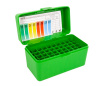 Удобный, компактный кейс MTM RL-50-10 на 50 патронов, без ручки из ударопрочного полипропилена, позволяющий держать патроны в порядке и уберечь их от непогоды. Изготовлен из практически неразрушимого полипропилена, который не деформируется, не трескается, не отслаивается, не расширяется и не сжимается. Ячейки не вынимаются, а отлиты вместе с корпусом. Закрывается коробочка на тугую защелку Snap-Lock, что предохраняет от случайного открытия и рассыпания патронов. Снаружи пластик кейса текстурирован для лучшего сцепления с поверхностью, на которой стоит кейс, а также для защиты от царапин.
