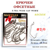 Офсетные крючки с серповидным загибом. Увеличено растояние от цевья до жала крючка, при этом, загнутое во внутрь жало позволяет избежать зацепов за подводные припятсвия. Отлично подходят для оснащения широкотелых приманок. Изготовлены из высокоуглеродистой стали.