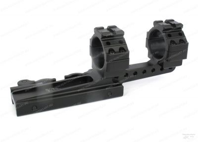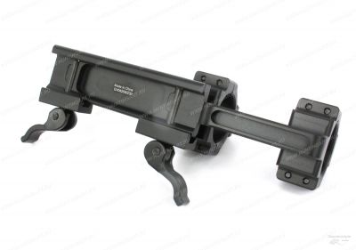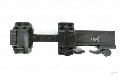 Кольца неподвижно соединены с основанием с выносом на 65 мм. Кронштейн легко крепится на стандартную планку Picatinny/Weaver, благодаря рычажному креплению.