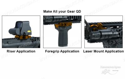 Небольшой быстросъемный переходник с планкой Weaver / Picatinny на 5 слота, предназначен для установки оптических, коллиматорных прицелов, ЛЦУ, тактических фонарей с креплением WEAVER на огнестрельное оружие с планкой WEAVER/ Picatinny. Изготовлен на высокоточном оборудовании из авиационного алюминия, покрытие – черное матовое анодирование.