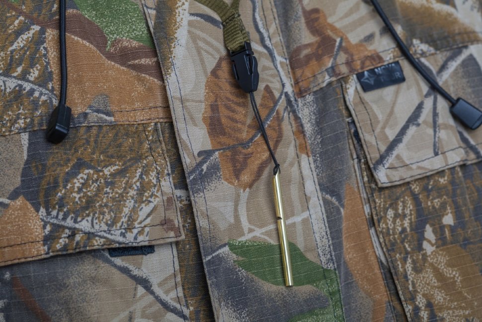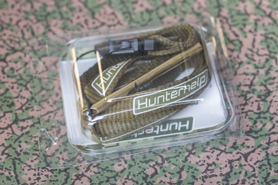 Манок «Hunterhelp SEMЁRKA» выполнен из латунной трубки немецкого проката. Трубка и звуковой узел манка защищены от коррозии никелированием. В трубке предусмотрено отверстие под шнурок, который идет в комплекте.