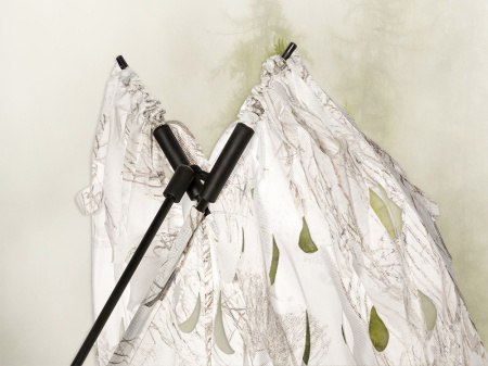 Мобильная маскировка создана специально для охотников, которые любят мобильность. Это очень легкая и компактная переносная засидка, которую можно собрать и разобрать за несколько секунд. Система позволяет охотнику сидеть прямо на земле за укрытием, делая его невидимым для зверей или птиц.