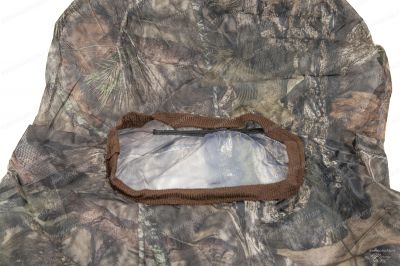 Охотничья маска обеспечивает хорошую вентиляцию и закрывает полностью голову охотника, защищая его, например в лесу. В задней части маски для охоты для утяжки вшита резинка. Маскировочная маска для охоты имеет отверстие для глаз. В нижней части отверстия камуфляжной маски имеется проволочная вставка для закрепления Built-in nose bridge на носу. Эту модель маскировочной маски удобно использовать совместно с очками (подходит для людей носящих очки).