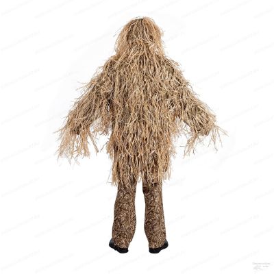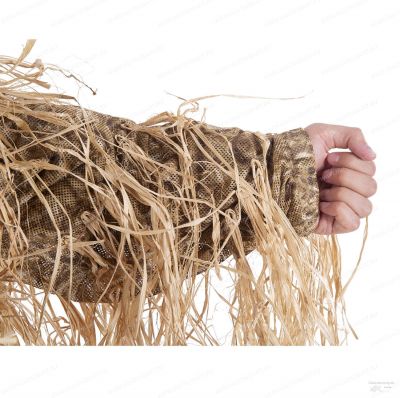 Маскировка Леший Рафия Ultra одевается поверх основной одежды. Халат выполнен в виде плаща с капюшоном, до колен с пришитыми листьями Рафия, имеет рукава и застегивается при помощи молнии спереди. Капюшон халата Леший имеет противомоскитную сетку. Рукава оснащены резинкой для более плотного прилегания. Основа костюма выполнена из легкой полиэфирной ткани, в расцветке NW-1 (специально разработанный для утиной и гусиной охоты в России), что делает его прочным и водостойким. Отличные маскировочные свойства халату придают узкие листья уникального растения РАФИЯ. Это листья пальмы с острова Мадагаскар, которые обладают долговечностью, износостойкостью и высокой прочностью. Не подвержен активному гниению после намокания, в отличии от простой высушенной травы и лыка.