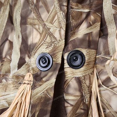 Отличное маскировочное решение. Халат совмещает достоинства высокоэффективной камуфлированной непромокаемой ткани и натуральной травы Рафия, которая не впитывает воду и не подвержена гниению. Защитит от ветра и влаги. Халат выполнен в виде плаща с капюшоном, до колен с пришитыми листьями Рафия, имеет рукава и застегивается при помощи молнии спереди. Капюшон халата Леший имеет противомоскитную сетку. Рукава оснащены резинкой для более плотного прилегания.