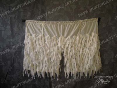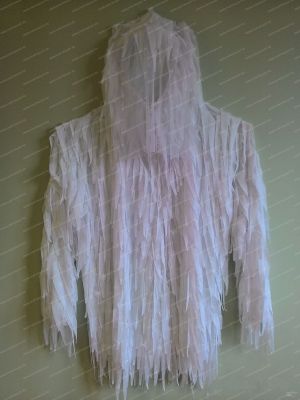 Верхняя часть представляет собой короткую куртку (ниже пояса) с капюшоном с утяжками по объему головы и по овалу лица, с противомоскитной сеткой. Основу куртки составляет трикотажная сетка Полиэстер 100%. На основу нашиты маскирующие элементы из сетки трикотажной, что делает костюм очень легким и не стесняющим движения. Так же на рукава, плечи и на капюшон нашиты петли из резинок для создания дополнительной маскировки на местности что позволяет максимально размыть силуэт человека. Альтернативный выбор застежки (пуговицы, завязки).