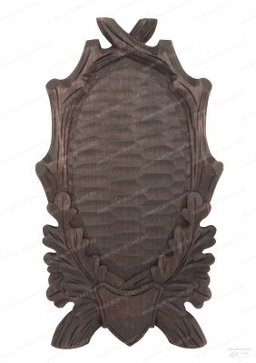 Красивый медальон ручной работы под трофеи, выполненный европейскими мастерами в стиле и традициях старинного охотничьего интерьера, будет являться прекрасным украшением вашего охотничьего дома. Овальный рифленый медальон, обрамленный апо кругу резьбой в виде дубовых веток и листьев.