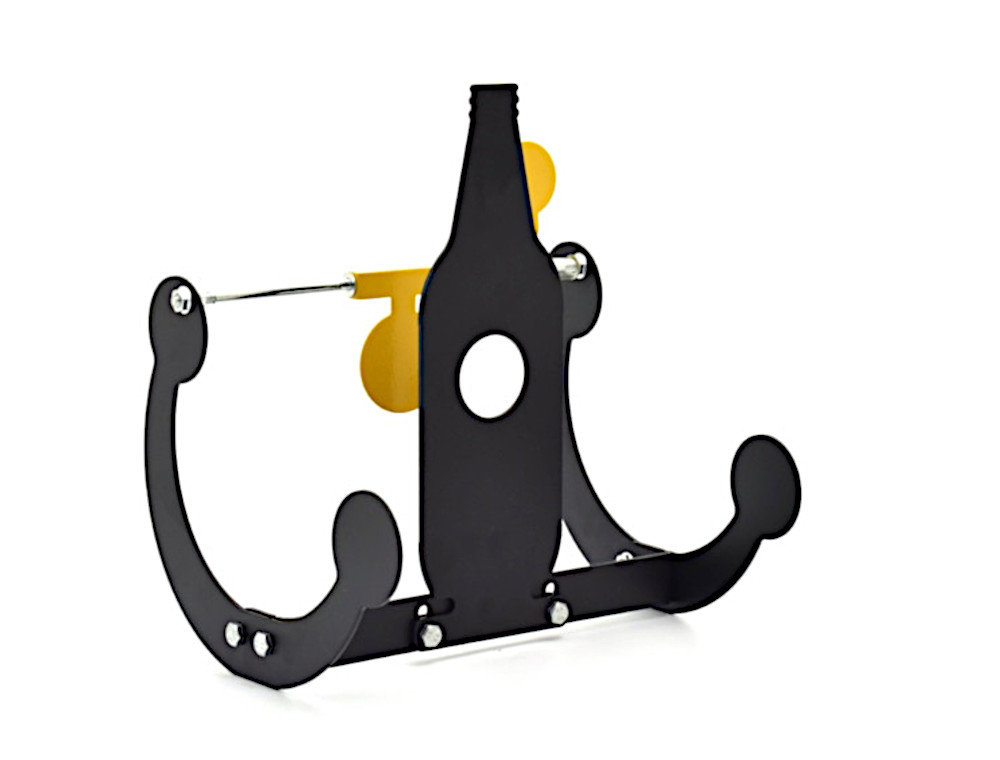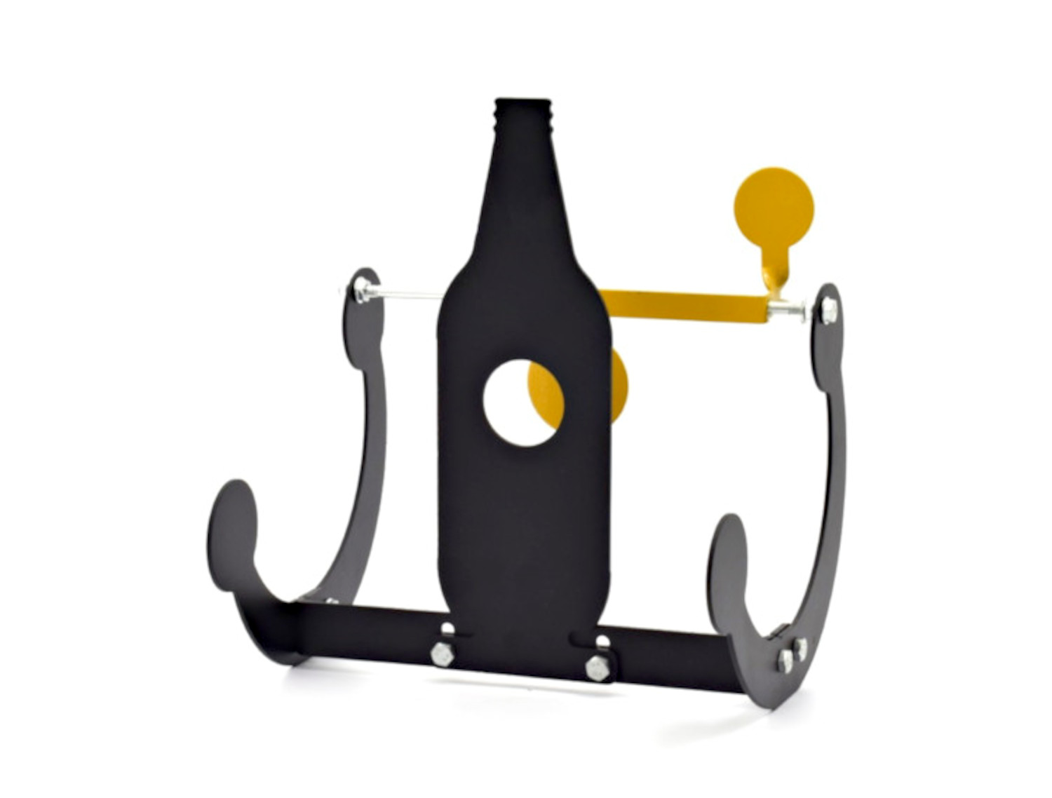 Принцип работы следующий: При попадании в центр, мишень начинает вращаться вокруг своей оси, сигнализируя о попадании. В случае промаха и попадания в корпус мишени (бутылки), она начинает качаться. Для усложнения задачи можно предварительно выстрелить в бутылку, раскачав её, таким образом получится движущаяся мишень. Благодаря такому принципу, вам не нужно постоянно заниматься сменой мишеней.