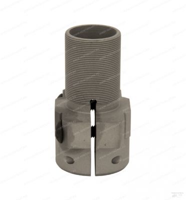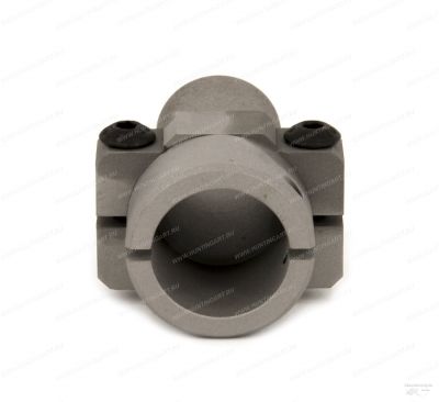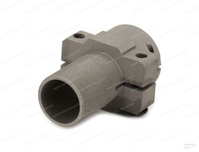 Монтаж муфты производится на штатное посадочное место взамен демонтированного пламегасителя. Конструктивно изделие выполнено в виде муфты с продольным пропилом неполного профиля. Для фиксации от осевого смещения используется фиксирующий штифт от штатного пламегасителя. Для обжатия на стволе используются стягивающие винты.