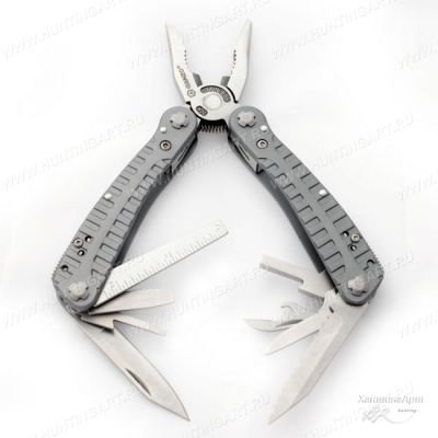Помимо большого количества встроенных инструментов, мультитул располагает дополнительными изделиями: шестигранными ключами (три штуки, наиболее часто используемых размеров), тремя плоскими отвертками, а также тремя крестовыми отвертками. Каждый из инструментов изготовлен из легированной стали с высоким содержанием углерода 440С, поэтому ножи долго сохраняют заводскую заточку, и каждый из них отличается высокой износостойкостью и не поддается коррозии.