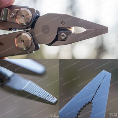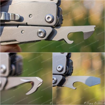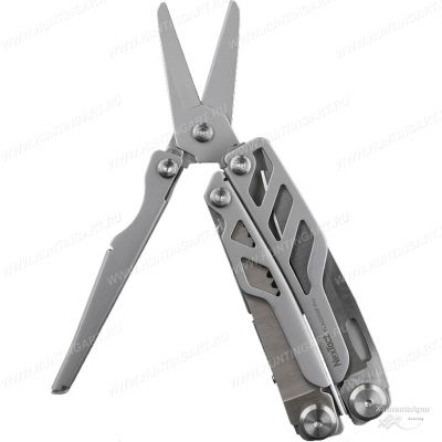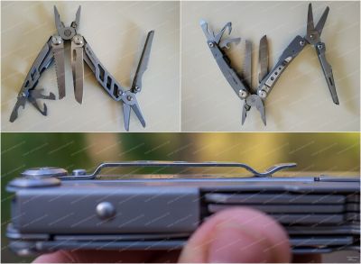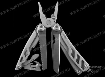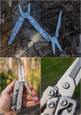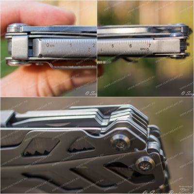 В общей сложности инструмент совмещает 16 функций. А именно: плоскогубцы; премиальные сменные кусачки; премиальные сменные жесткие кусачки; щипцы для проводов; пила; нож; отвертка Philips; резак; инструмент для зачистки проводов; открывашка; открывалка для бутылок; прямая отвертка; стеклобой; ножницы пружинного действия; линейка. Плоскогубцы годятся для выполнения как грубой, так и тонкой, работы. Кусачки подразделяются на два вида. Первая разновидность, острые и деликатные инструменты, служат для перекусывания мягких материалов. Помогут там, где необходимо сделать осторожный тонкий срез. Вторая разновидность подойдет для «перекуса» даже толстой проволоки. Кусачки поддаются замене, их можно легко заточить, если возникла потребность. Крепкий нож мультитула способен выдерживать немалые боковые воздействия. Также он отлично удерживает остроту. Режущая кромка запросто восстанавливается, достаточно сделать несколько движений по мусату. Пила великолепно справляется с любым сортом древесины. Имеющиеся отвертки помогают облегчить непростые задачи бытового характера. Также модель имеет полноценные ножницы. Они без проблем разрезают разные материалы, как-то: картон, бумага, пластик.