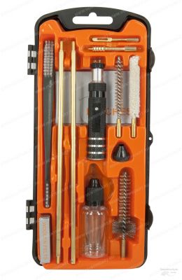 Удобный функциональный набор для чистки, включает в себя 12 предметов в компактном пластиковом пенале. Предназначен для чистки, обслуживания оружия как в домашних, так и в полевых условиях.