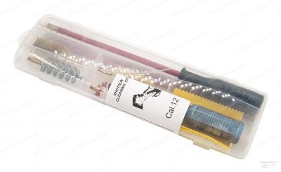 Набор для чистки гладкоствольного оружия 12 калибра в пластиковом прозрачном футляре с металлопластиковым шомполом - стальным внутри с оболочкой из мягкого пластика. Достоинство такого шомпола - он более "гигиеничен" для оружия, чем металлические - не повреждает внутреннюю поверхность ствола, хромировку.