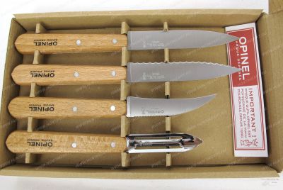 Набор из 4 шт столовых ножей серии Les Essentiels №112/113/114/115 с рукоятью из дерева бук, лезвие нержавеющая сталь от Французской компании Opinel. Клинок из нержавеющей стали не требует ухода, великолепно режет и обладает хорошей гибкостью. Прекрасный помощник на кухне