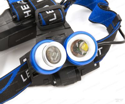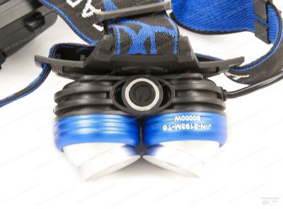 Фонарь с 4 режимами работы: левая фара - белый свет, правая фара - белый свет, общий свет, стробоскоп. Наклон фар регулируется по отдельности, фокус каждой линзы (зум) регулируется. Питание от 2 батареек 18650 8800 мА·ч. В комплекте поставляется провод зарядки microUsb. Включение/выключение фонаря кнопочное.
