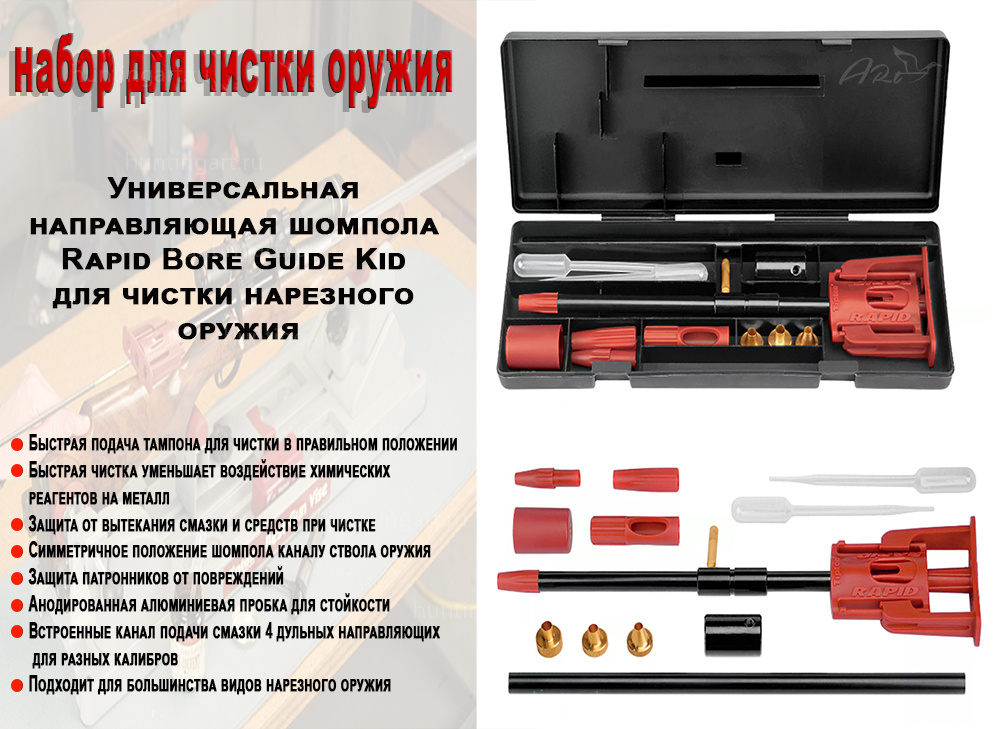 Набор для ухода за оружием Bore Guide Kit содержит несколько инструментов, позволяющих обеспечить безопасный, легкий и наиболее эффективный уход за Вашим оружием.