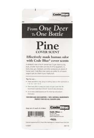 Иногда нужно пахнуть, как пахнет природа. Особенно, если вы собираетесь охотиться на трофейных животных. Осенью, когда еды меньше, желуди и кедровые шишки являются одним из наиболее важных источников пищи для многих животных. Это питательные продукты, которые олени будут активно искать и потреблять в больших количествах. Так что если вы охотились в районе с большим количеством деревьев дуба, или кедра нейтрализатор запаха Code Blue скроет ваш человеческий запах приятным ароматом желудей или кедровых орехов который будет вызывать любопытство у животных. Code Blue с ароматами жёлудя и кедра является идеальным дополнением к нейтрализаторам запаха обеспечивающим скрытность во время осеннего и зимнего охотничьего сезона. И несомненно, с естественным запахом желудей или кедра, вы будете соответствовать среде обитания животных на которых охотитесь. Даже если в ваших лесах нет этих деревьев эти запахи будут вас хорошо маскировать и вызывать любопытство многих животных. Также, вы можете воспользоваться запахом сосны, если не уверены, что другие запахи вам подходят.