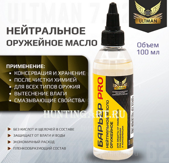 Нанесение нейтрального масла способствует образованию надежной защитной пленки, которую достаточно тяжело смыть водой. Отлично подходит для обработки механизмов оружия после чистки. излишки масла всегда рекомендовано удалять с обрабатываемой поверхности, чтобы исключить накопления твёрдых загрязняющих частиц.