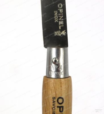 Маленький и компактный нож в форме брелка, но очень прочный. Клинок выполнен из нержавеющей стали и не требует ухода. На лезвии выгравирована маркировка производителя: эмблема в виде увенчанной короной благословляющей руки. Рукоять эргономической формы выполнены из дерева бук и пропитана маслом. Нож n°4 не имеет фиксатора лезвия Viroblock из-за своего размера и назначения. Кольцо для ключей на цепочке.
