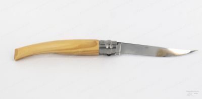 Складной легкий филейный нож. Крепкий, практичный, удобно лежит в руке. Отличное качество. Ручная сборка. Рукоятка выполнена из оливкового дерева отполирована. Закрывается нож на оригинальное запорное устройство Viroblock, представляющее собой кольцо с прорезью, которое, будучи повернуто относительно оси ножа, упирается в пятку клинка и не дает ножу самопроизвольно складываться при работе или раскладываться в кармане.
