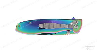 Нож полностью металлический, изготовлен из высококачественной стали 7Cr17MoV. Все части надежно соединены, клинок фиксируется системой Liner Lock, которая считается одной из самых простых и надежных. На рукояти имеется металлическая клипса для возможности крепления ножа на пояс или одежду.