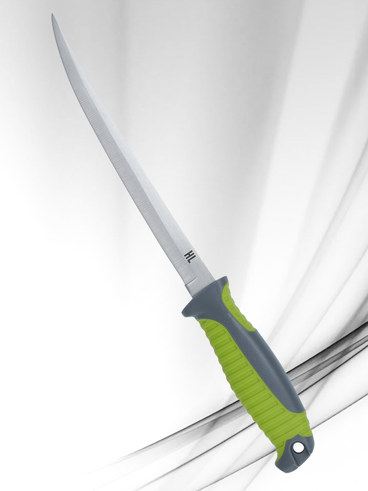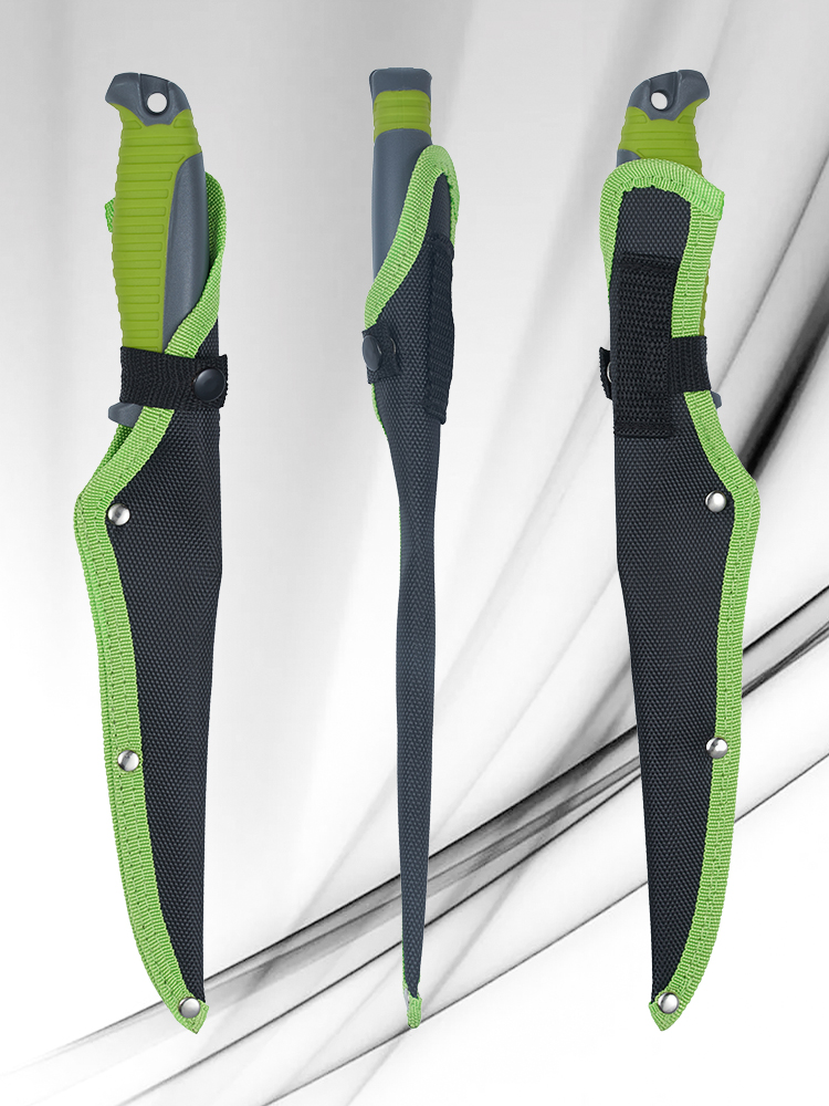 Филейный нож HL Fillet Green+Grey с нейлоновыми ножнами – настоящая находка для любителей охоты и рыбалки. С его помощью вы сможете легко и быстро обработать мясо и рыбу, получая идеально чистые и аккуратные филе.