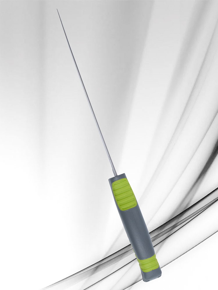 Рукоять ножа с прорезиненными элементами обеспечивает надежный и комфортный хват для уверенной работы. Хвостовик оснащен отверстием для темляка. Общая длина ножа составляет 32,5 см, а длина клинка – 20,2 см. Толщина клинка составляет 1 мм, что обеспечивает отличную гибкость и точность работы.