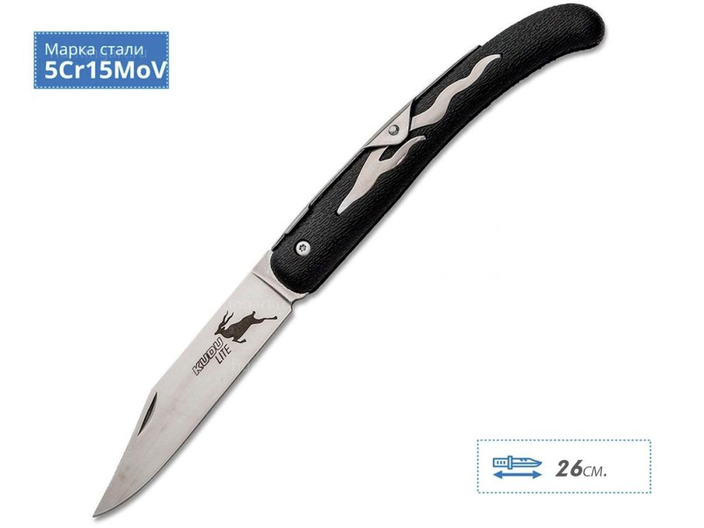 Складной нож Cold Steel Kudu Lite это бюджетный, рабочий фолдер, созданный на основе немецких ножей (выпускавшихся для снабжения колоний в Южной Африке). Рукоять выполненная из композитного материала Zy-Ex не боится высоких и низких температур. Лезвие длинное с заостренным концом выполнено из стали 5CR15MOV.