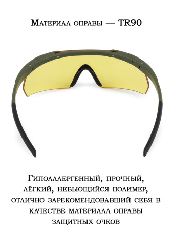 Стрелковые очки имеют переносицу из резины, что обеспечивает комфорт и удобство при ношении. Также они оснащены базовым антифогом и защитой от ультрафиолета UV 400, что гарантирует безопасность глаз при использовании. Очки из поликарбоната толщиной 2 мм обеспечивают защиту по стандарту ANSI Z87.1, что делает их идеальным выбором для стрельбы. Оправа выполнена из TR90 - гипоаллергенного, прочного и легкого полимера, который не бьется и отлично подходит для использования в экстремальных условиях.