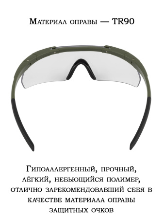 Стрелковые очки имеют переносицу из резины, что обеспечивает комфорт и удобство при ношении. Также они оснащены базовым антифогом и защитой от ультрафиолета UV 400, что гарантирует безопасность глаз при использовании. Очки из поликарбоната толщиной 2 мм обеспечивают защиту по стандарту ANSI Z87.1, что делает их идеальным выбором для стрельбы. Оправа выполнена из TR90 - гипоаллергенного, прочного и легкого полимера, который не бьется и отлично подходит для использования в экстремальных условиях.