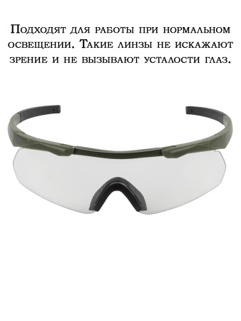 — GST-035-AG-C - Это защитные стрелковые очки с зелёной оправой и прозрачными линзами, которые подходят для работы при нормальном освещении. Такие линзы не искажают зрение и не вызывают усталости глаз.