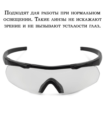 — GST-035-BLK-C - Это защитные стрелковые очки с черной оправой и прозрачной линзой не искажают изображение и не утомляют глаз, обеспечивая комфортное ношение в условиях нормального освещения.