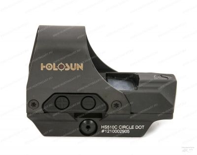 Специальный дизайн, отличительными чертами которого являются скрытый батарейный отсек, эргономичные кнопки, позволяют стрелку не отвлекаться на лишние детали. Выполнен коллиматор из прочного алюминиевого сплава и покрыт титановым защитным кожухом ("капюшон"). В коллиматоре HS510C используют высококачественные полированные линзы с просветляющим покрытием. Прицел оснащен 12 уровневой системой яркости и имеет 3 переключаемых прицельных марки: точка, круг и круг с точкой. Точка прицеливания и точка попадания не меняют своего положения независимо от положения головы стрелка. Уникальной чертой коллиматора является датчик движения в сочетании с программируемой функцией автоматического включения при движении. Сменить прицельную марку, выбрать видимую или невидимую инфракрасную точку лазера можно простым нажатием кнопки. Также использует уникальные светодиоды, разработанные с помощью передовых технологий, которые позволяют работать прицелу в режиме марки «точка» при минимальной яркости на одной батарейке CR2032 (литиевая батарейка 3 В) в течение 200 000 часов (более 22-х лет). При средней яркости (равной 6) батарейка прослужит 50 000 часов (более 5-ти лет). При этом точка светодиода отчетливая и яркая, энергопотребление очень низкое. Срок службы батарейки составляет несколько лет и приближается к сроку ее хранения. Электропитание осуществляется двумя способами; 1 - от солнечной батареи, 2 - от батарейки CR2032. Применяемые солнечные батареи позволяют светодиодам, потребляющим мало энергии, работать в условиях обычной освещенности непосредственно от солнечной энергии. Используя энергию солнечного света, прицел может работать на протяжении 400 000 часов (более 45-ти лет) в режиме прицельной марки "точка" и на протяжении 30 000 часов (более 3-х лет) в режиме прицельной марки "круг с точкой". Прицелы с солнечной батареей - НЕ ОТКЛЮЧАЮТСЯ. Прицел может быть установлен на любое оружие со стандартной планкой Weaver/Picatinny. Благодаря патентованной прижимной системе инструменты для установки не требуются. Точная и высококачественная сборка позволяет создать герметичность прибора, которая не позволяет попадать влаге и грязи внутрь. Совместим с ПНВ.
