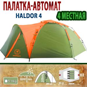 Палатка-автомат HALDOR 4 — идеальное решение для комфортного отдыха на природе. Благодаря автоматическому каркасу, она быстро и легко устанавливается, экономя ваше время и силы.