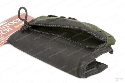 Патронташ на приклад необходим охотнику для хранения патронов на нарезное оружие (для 5 патронов). Он изготовлен из прочной ткани неопрена, расцветка пояса - черный/зеленый. Патронташ закрепляется на прикладе любого ружья с помощью с помощью 4-х ремешков на липучках. Оснащен карманом на молнии для различных аксессуаров. Мягкая и невысокая подушка добавляет примерно 8 мм. к высоте приклада и значительно больше комфорта при выцеливании желанного трофея!