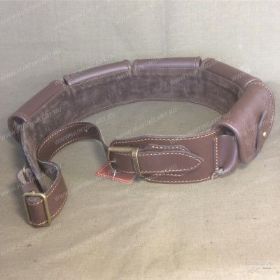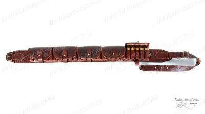 Закрытый патронташ изготовлен из натуральной кожи с тиснёным рисунком. Предназначен для ношения на поясе, гладкоствольных патронов 12, 16, 20 калибра.