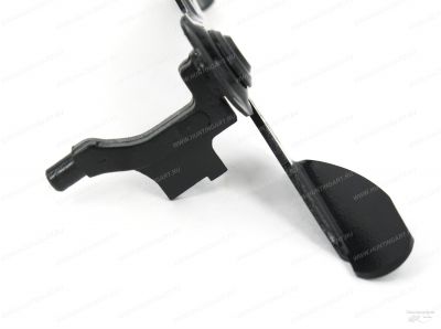 Модернезированный предохранитель позволяет производить постановку на предохранитель и переключение режимов огня быстрее и комфортнее, при помощи указательного или большого пальца, а также ладонью. Дополнительный упор позволяет не отрывать ладон от рукоятки управления огнем.