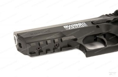 Swiss Arms 941 копирует израильский пистолет Jericho 941. Качество копии на высшем уровне. Затвор и магазин выполнены из металлического сплава, рамка - из ударопрочного пластика.Так же все внутренние компоненты выполнены из металла,что делает пистолет надёжным и неприхотливым. Затвор не подвижен,а значит,блоубек отсутствует .Отличительной чертой Swiss Arms 941 является наличие планки Вивера под стволом,что даёт такие возможности как : установка лазерного целеуказателя(ЛЦУ),тактического фонаря или планки для крепления различных прицелов.Данная модель пистолета очень хорошо и надёжно лежит в руке,что делает стрельбу приятной. Имеет удобные , контрастные открытые прицельные приспособления (целик с мушкой). Достоинством Swiss Arms 941 является высокая начальная скорость шарика: 120м/с,приличная вместительность магазина: 22 шарика,а так же его надежность и увесистость. В комплекте с пистолетом идёт: шестигранник для зажима балона , ускоритель заряжания магазина и стандартный комплект шариков.