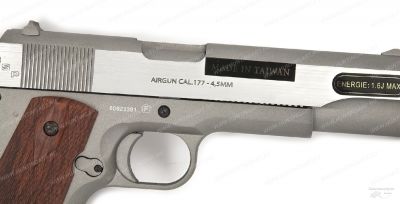 Пистолет пневматический Swiss Arms SA1911 Seventies Stainless Pistol (Colt 1911), калибр 4,5 мм от Французской компании Cybergun (Swiss Arms,Франция).