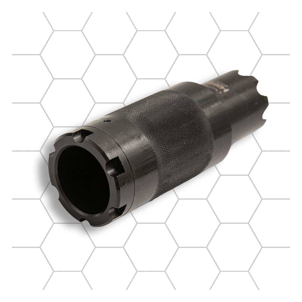 — стал состоять из двух частей. Резьба находится на воронке, что дает невозможности изменения соосности воронки, если произойдет небольшое откручивание при интенсивной стрельбе.