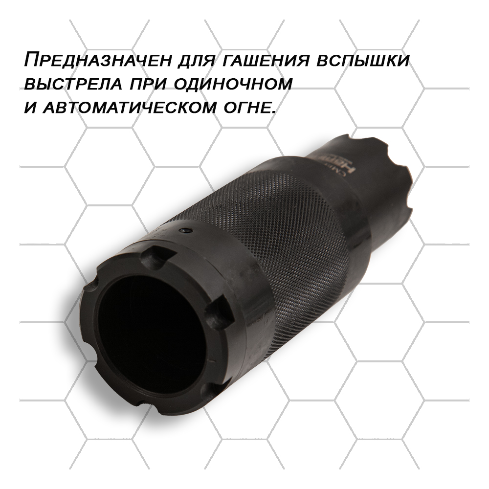 Предназначен для гашения вспышки выстрела при одиночном и автоматическом огне. Дожигатели являются более эффективным видом пламегасителей, чем щелевые. В основе конструкции — камера догорания в закрытом корпусе.