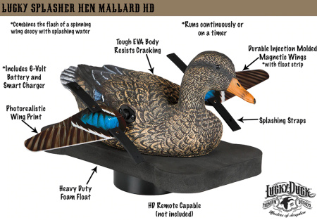 Плавающее чучело кряквы с вращающимися крыльями Lucky Splasher (Лаки Сплэшер) от Американской компании Lucky Duck.