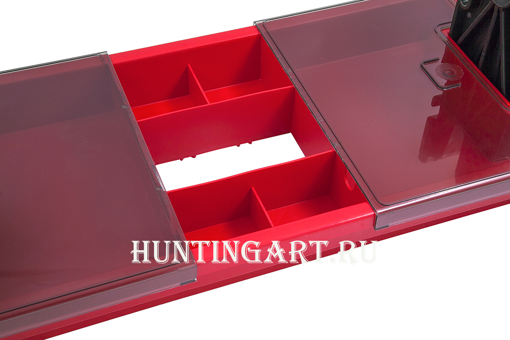 В процессе чистки оружия ёмкости с сольвентами и маслами располагаются в специальных гнёздах поддона RMC-1-30 MC Compact, что предохраняет вас и вашу мебель от неосторожного опрокидывания «химии». Это особенно важно в случае чистки оружия в домашних условиях, что характерно для подавляющего большинства охотников. В отсеках поддона вы также можете в удобном для вас порядке разместить все необходимые расходники и инструменты – от патчей до ершей.