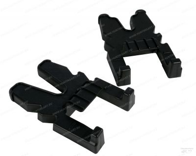 Подставки для оружия легко и надежно крепятся (одеваются) на ящик, выполнены из пластика черного цвета.