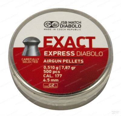 Пульки Exact Express калибра 4,52 мм и весом 0,510 грамм от компании JSB Match Diabolo, Чехия.