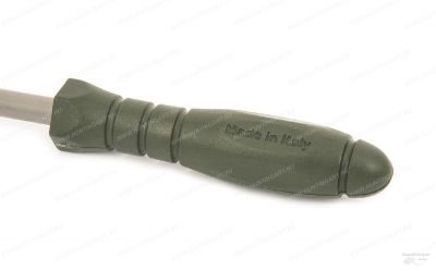 Выполнен, из метала, сверху покрыт для защиты оружия пластмассой, что гарантирует сохранность нарезов на пульном входе. Ручка изготовлена из пластмассы и зафиксирована (не вращается). С другого конца шомпола - латунный переходник под внешнюю резьбу для прикручивания чистящего инструмента - вишера, щетки, ершика.