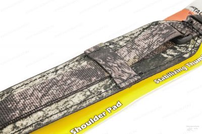 Ремень представляет собой сверхпрочную и легкую конструкцию, имеет нескользящую основу. Передняя часть ремня выполнена в ткани цвета Advantage Timber, оснащен D-образным кольцом для крепления аксессуаров, регулируемой пряжкой, и 2 антабками. На ремне имеется амортизирующая подкладка. Плечевая часть ремня по всей длине с прокладкой из вспененного материала толщиной 1 см, позволяющая меньше уставать плечу при длительных переходах. Широкая и мягкая накладка равномерно распределяет вес на плече, для комфортного ношения оружия.