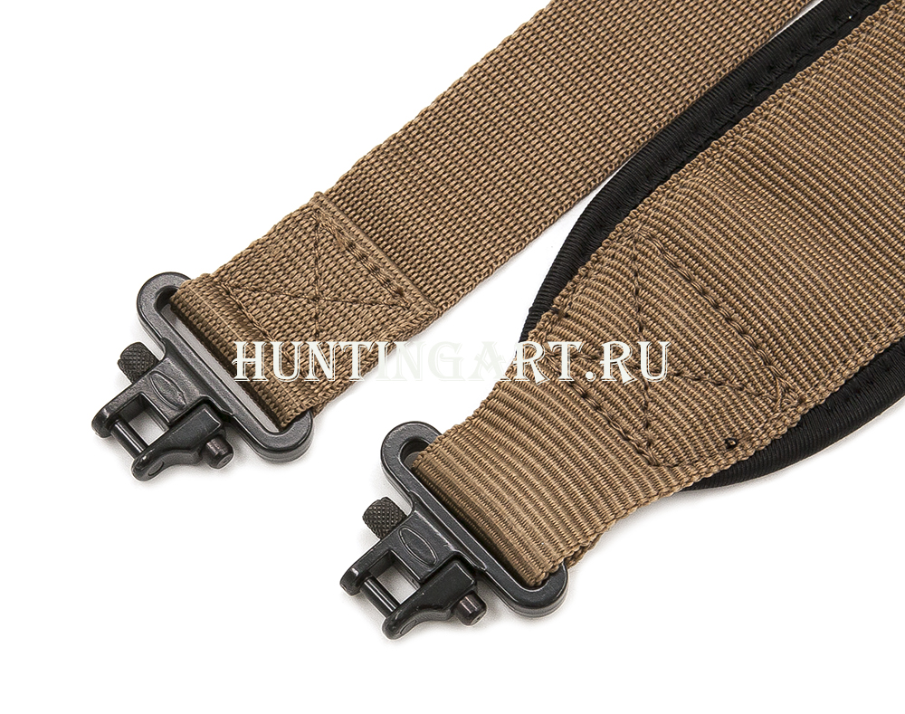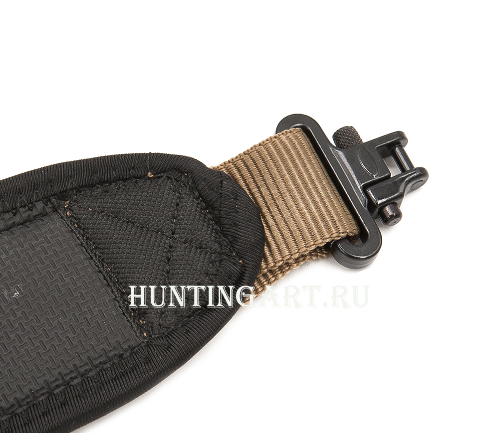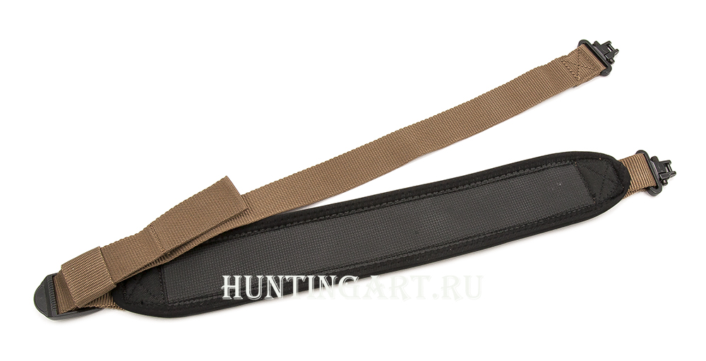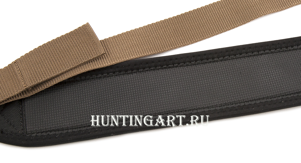 Широкий ремень для ружья из прочного капрона с двумя антабками. Широкая плечевая часть ремня по всей длине с мягкой прокладкой, позволяющая меньше уставать плечу при длительных переходах.