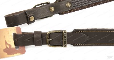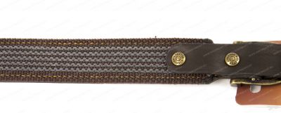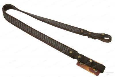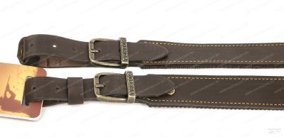 Погонный ремень выполнен из натуральной кожи с нескользящей синтетической подкладкой, ширина ремня 30 мм. Длину ремешков с обеих сторон можно регулировать металлическими пряжками. Это позволяет изменять общую длину ремня для ружья от 90 до 100 см. Рабочая сторона ремня для оружия обладает нескользящими свойствами. Изготовлена из полиамидной ленты с вплетенными в неё латексными волокнами. Все части ремня несущие нагрузку скреплены латунными заклёпками. Изделие прошито прочными лавсановыми нитями. Рабочая сторона ремня обладает нескользящими свойствами.